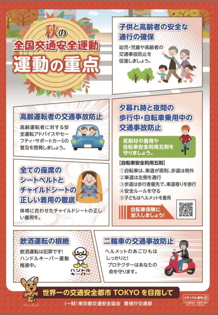 令和4年9月21日(水)から30日(金)は秋の全国交通安全運動期間です。 (重点 ...