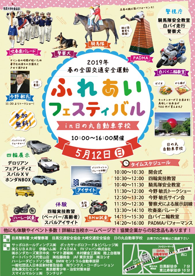 5/12(日)に開催された目黒・大崎警察署ふれあいフェスティバルin日の丸自動車(2019年春の全国交通安全運動)に参加してきました。