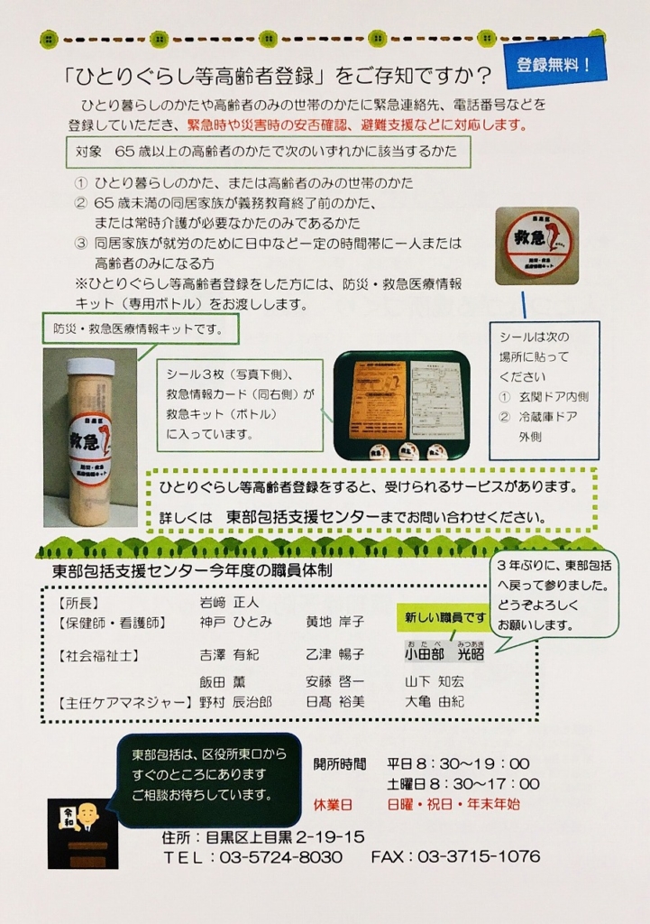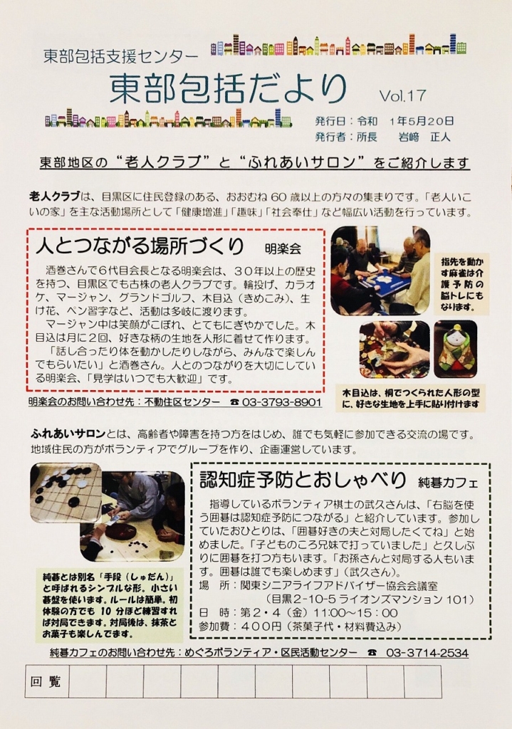 回覧板でお知らせしている情報です。 不動出張相談会の案内(目黒区東部包括支援セン ...