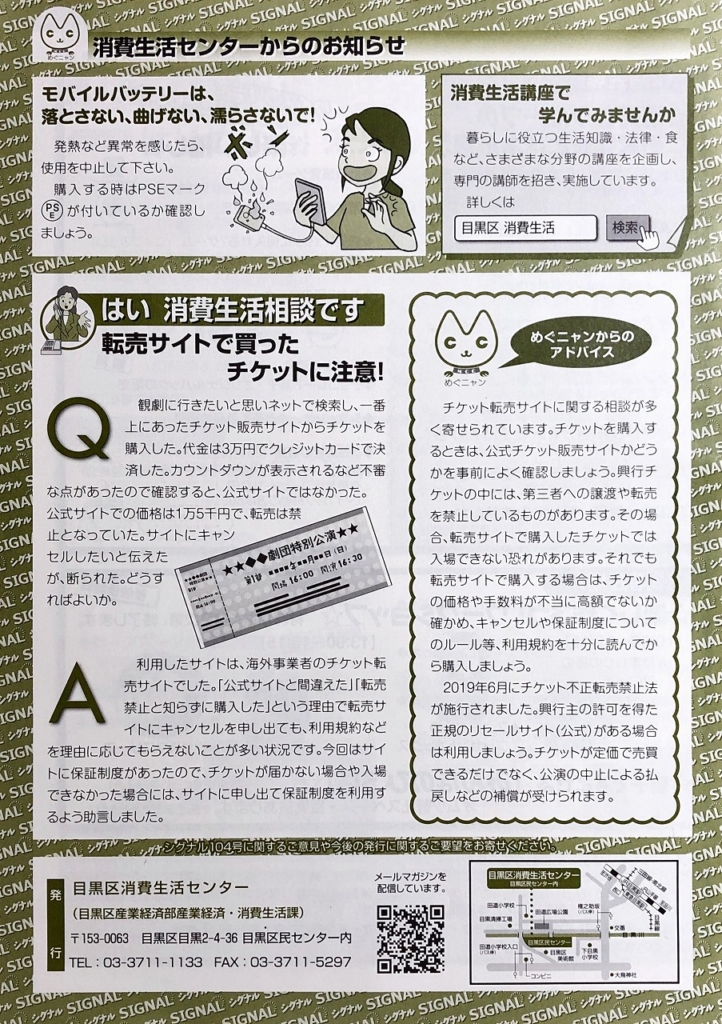 ・めぐろ消費者にゅうす(目黒区消費生活センター)