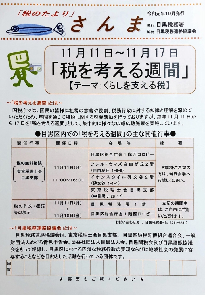 ・「税のたより」さんま(目黒税務署)