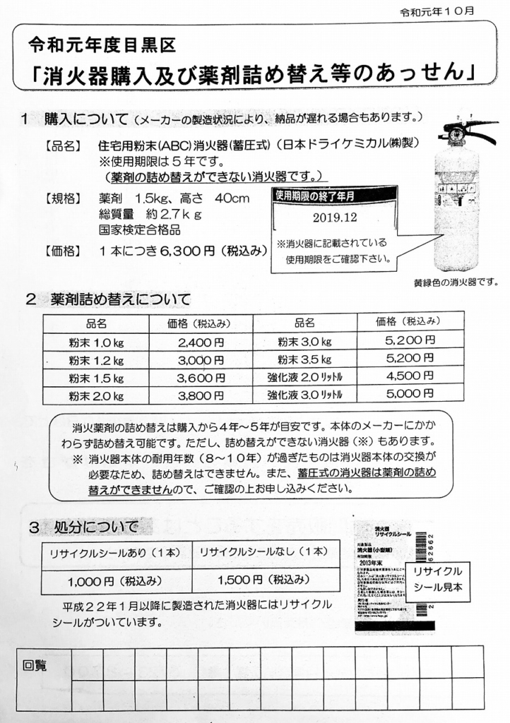 ・消火器購入及び薬剤詰め替え等のあっせん(目黒区防災課)