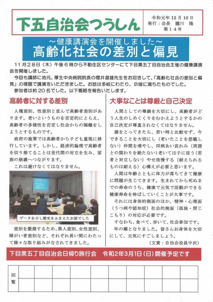・下五自治会つうしん第14号(下目黒五丁目自治会)