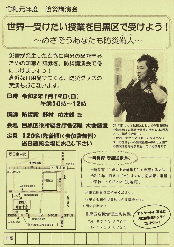 ・令和元年度防災講演会(目黒区危機管理室防災課)
