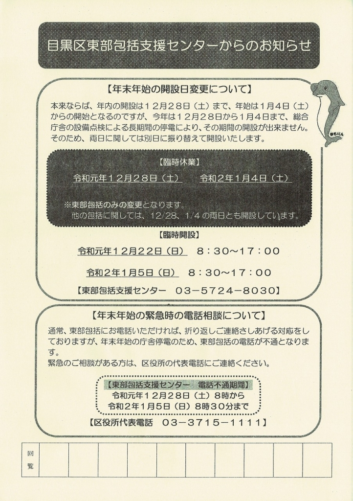 ・年末年始の開設日変更について(目黒区東部包括支援センター)