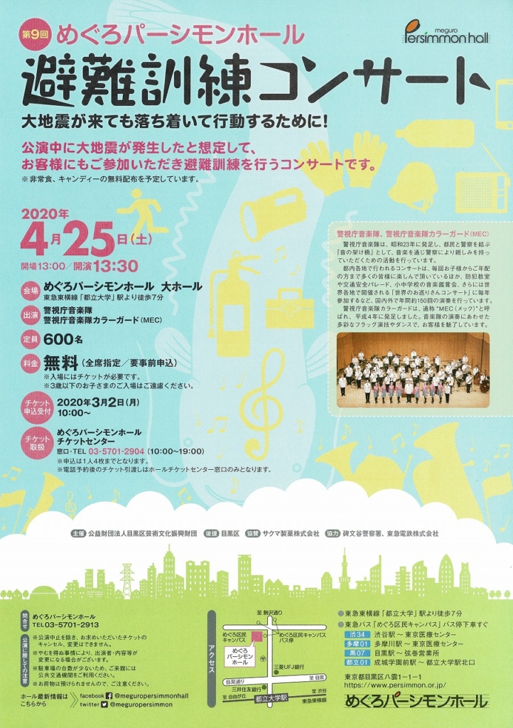 ・4/25(土) 避難訓練コンサート(めぐろパーシモンホール)