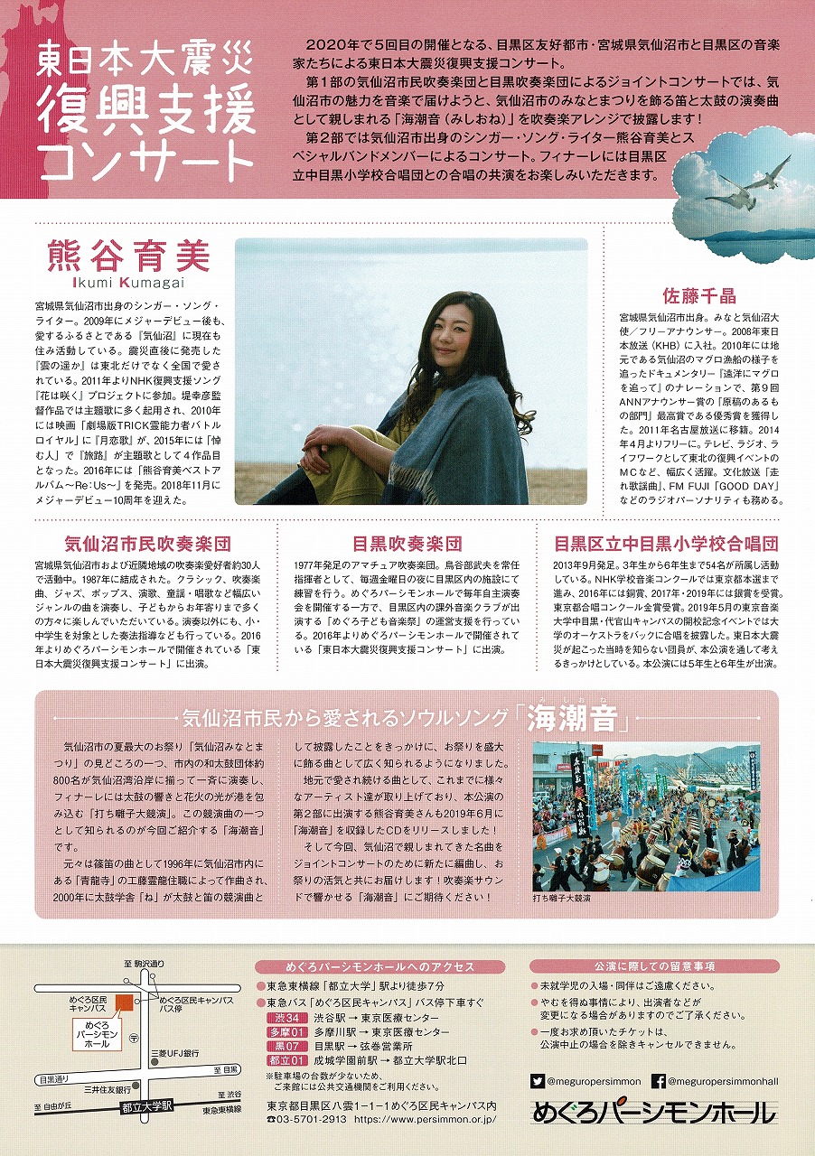 ・3/15(日) 東日本大震災復興支援コンサート(めぐろパーシモンホール)