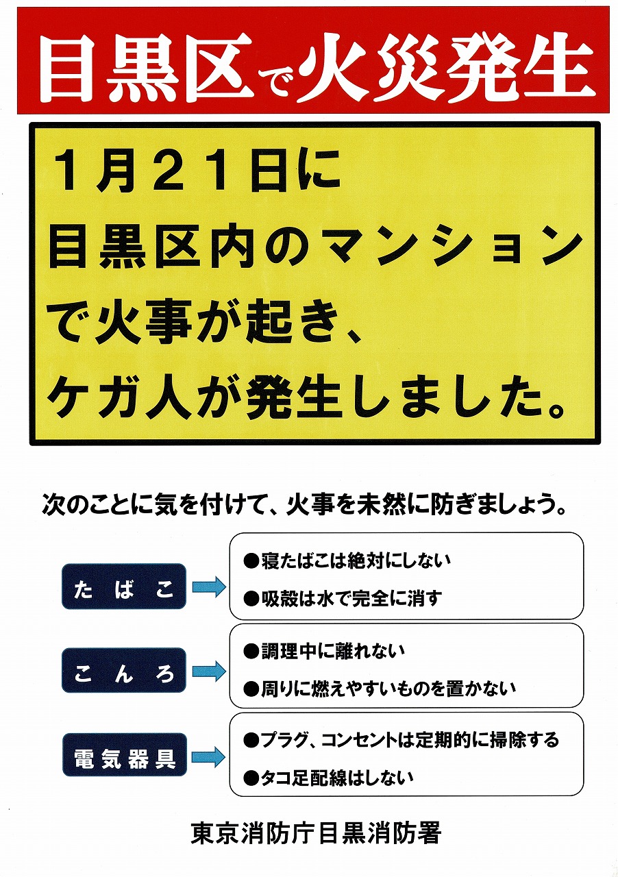 ・目黒区で火災発生(目黒消防署)