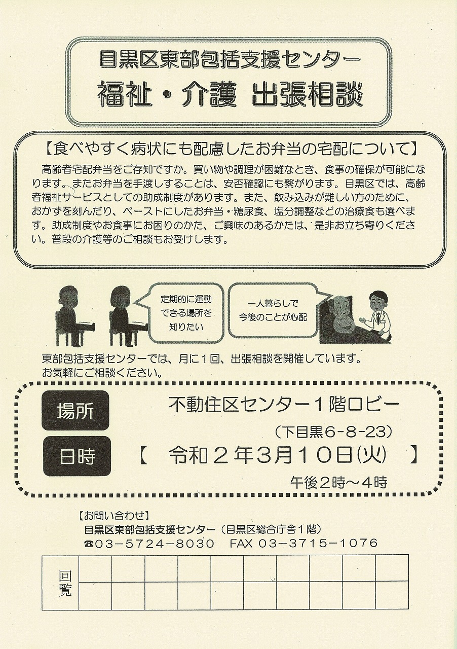 回覧板でお知らせしている情報です。 ・東部包括だより(目黒区東部包括支援センター ...