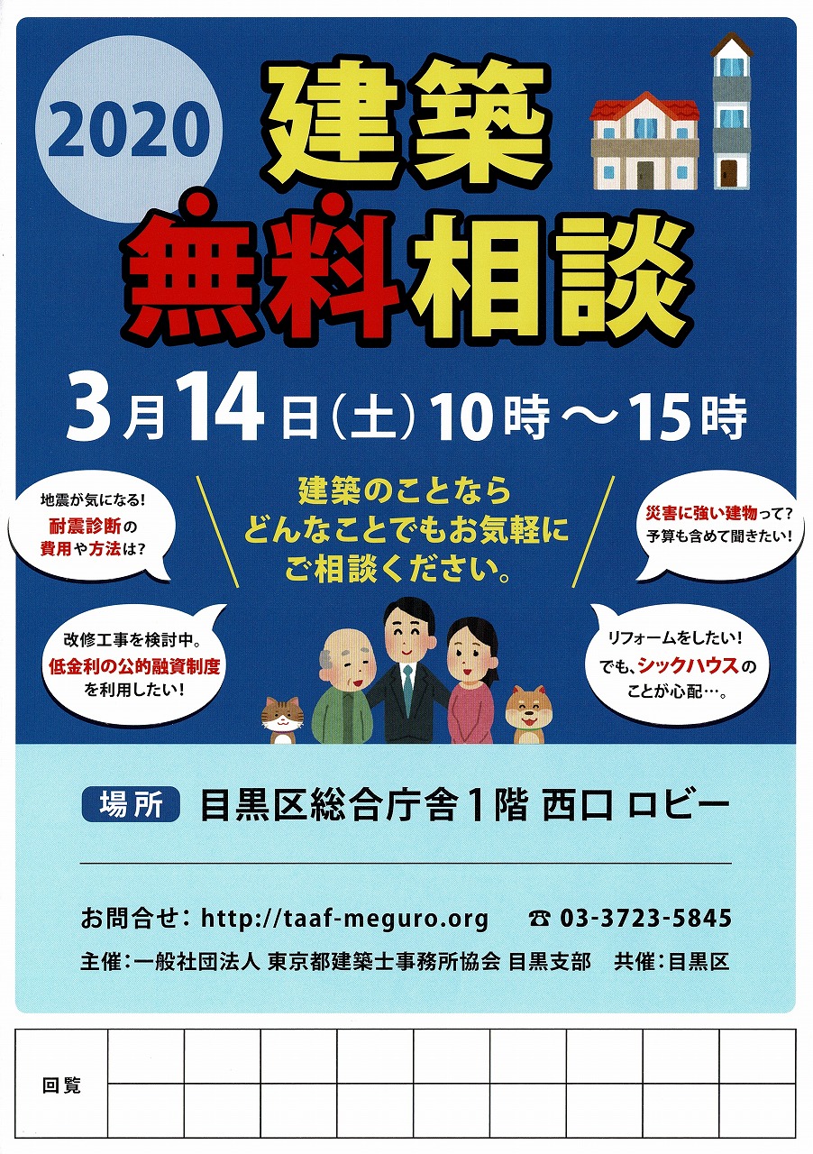 ・2020年建築無料相談(東京都建築士事務所協会目黒支部)