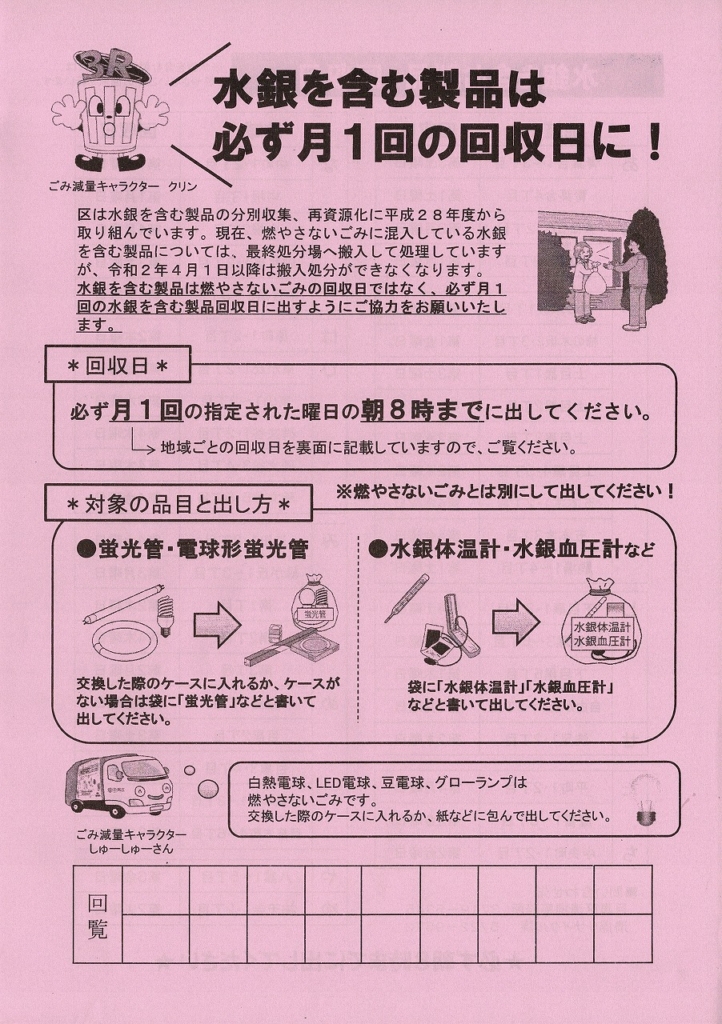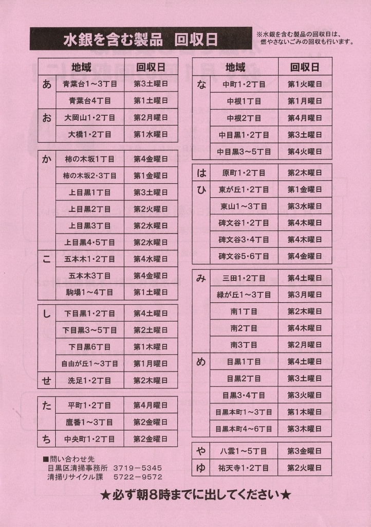 ・水銀を含む製品は必ず月1回の指定日に!(目黒区清掃事務所)
