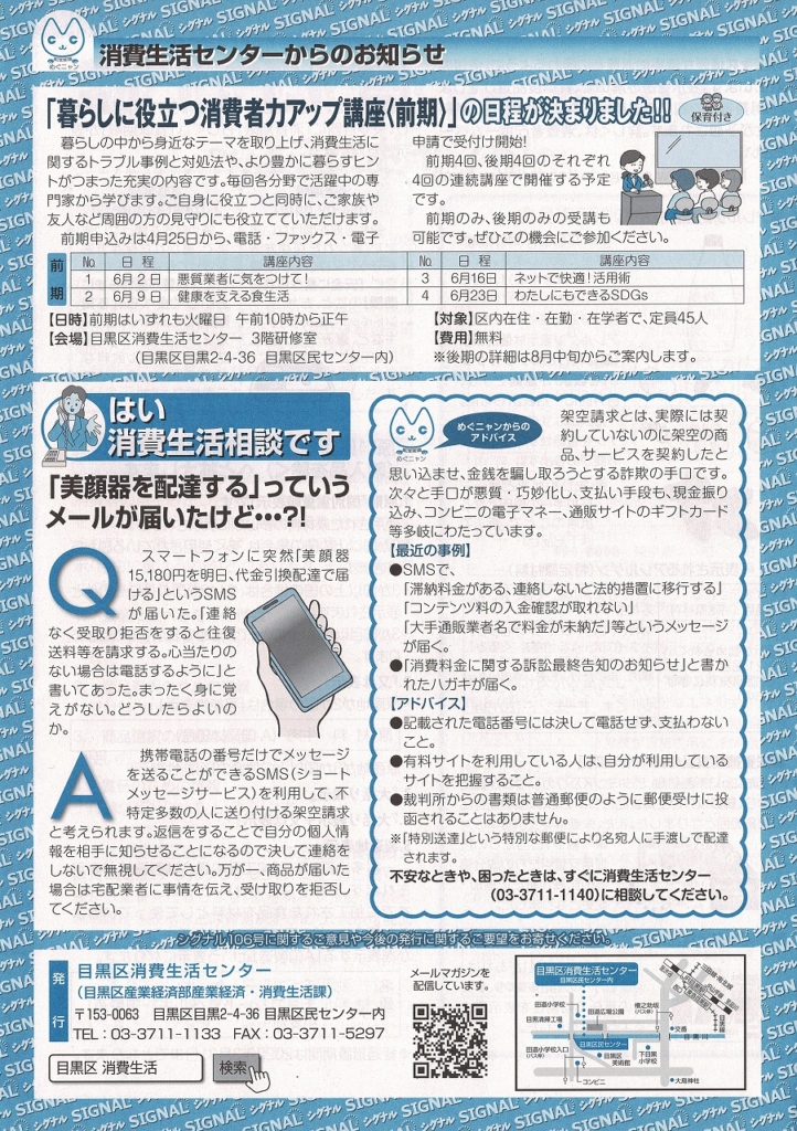 ・めぐろ消費者にゅうすNo.106(目黒区消費生活センター)