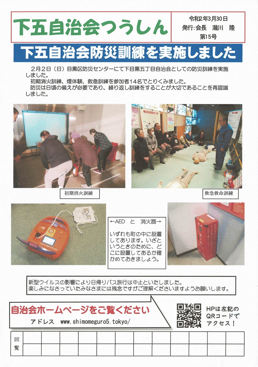 ・下五自治会つうしん第15号(下目黒五丁目自治会)