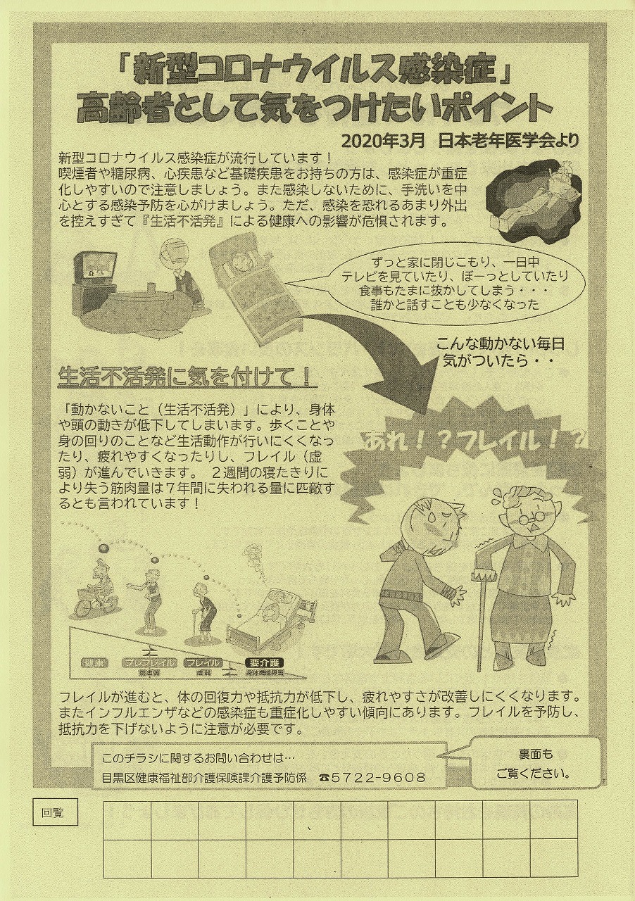 ・「新型コロナウイルス感染症」高齢者として気をつけたいポイント(目黒区健康福祉部)