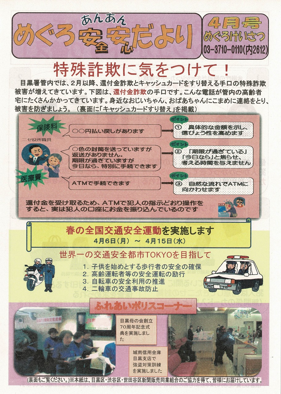 目黒警察署から、めぐろ安全安心だより(10月号)が届きました。令和4年10月11 ...