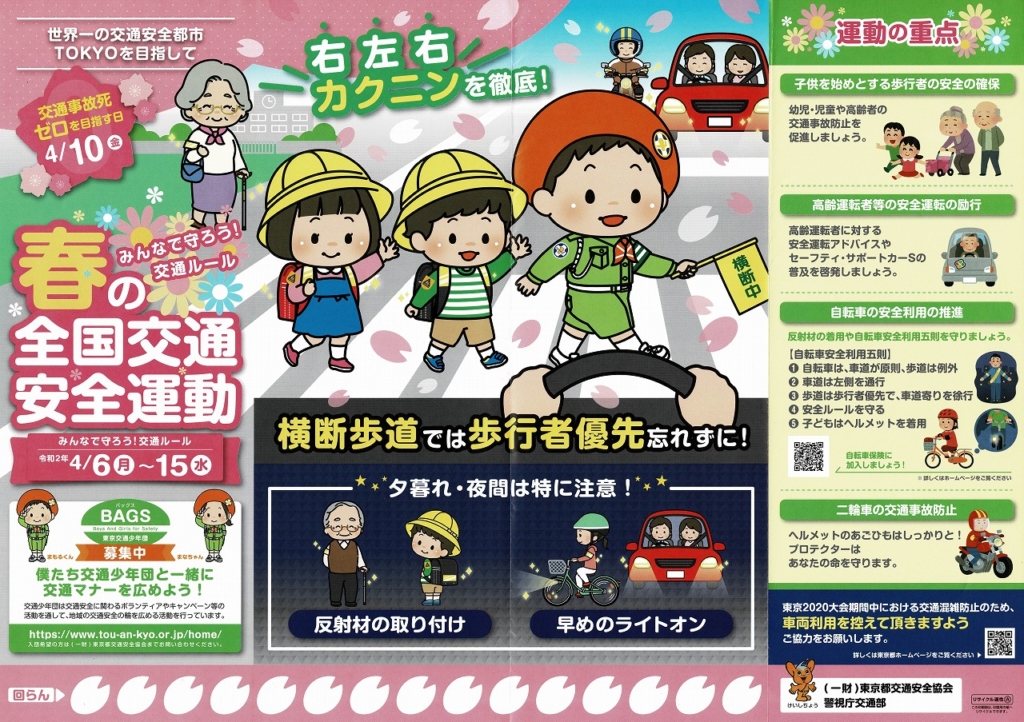 令和7年4月6日(日)から15日(火)は春の全国交通安全運動です。 ・こどもを始 ...