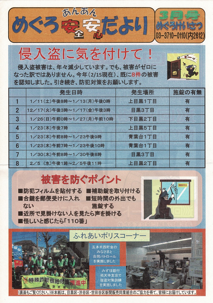 目黒警察署から、めぐろ安全安心だより(2024年5月・6月合併号)が届きました。 ...