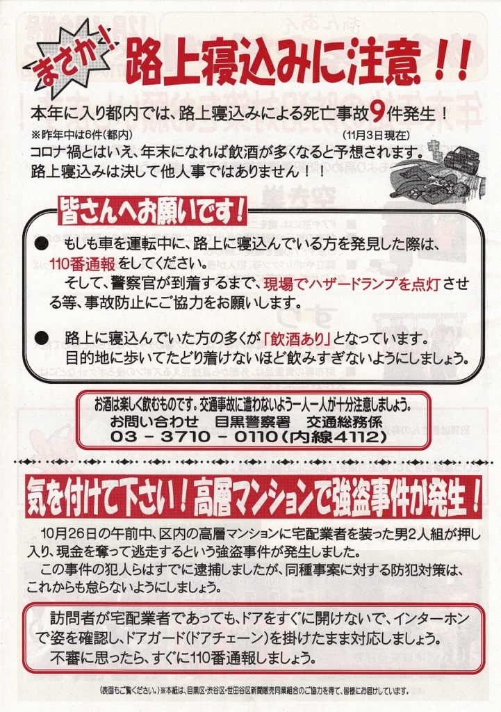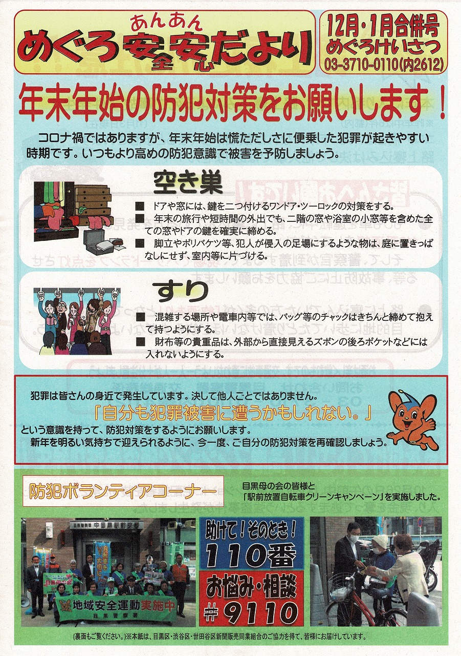 目黒警察署から、めぐろ安全安心だより(2024年11月・12月合併号)が届きまし ...