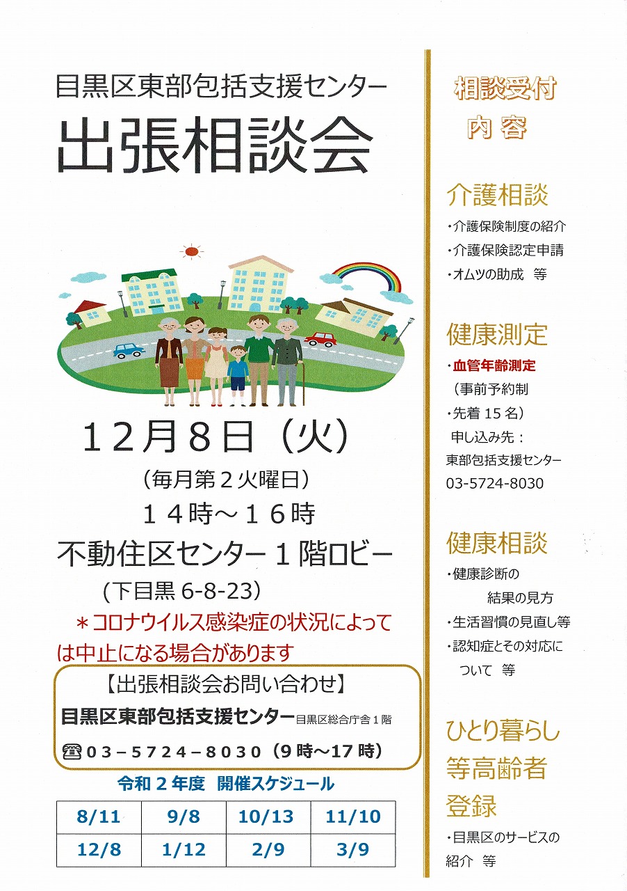 令和2年12月8日(火)に予定されていた不動住区センターでの出張相談会は中止となりました。