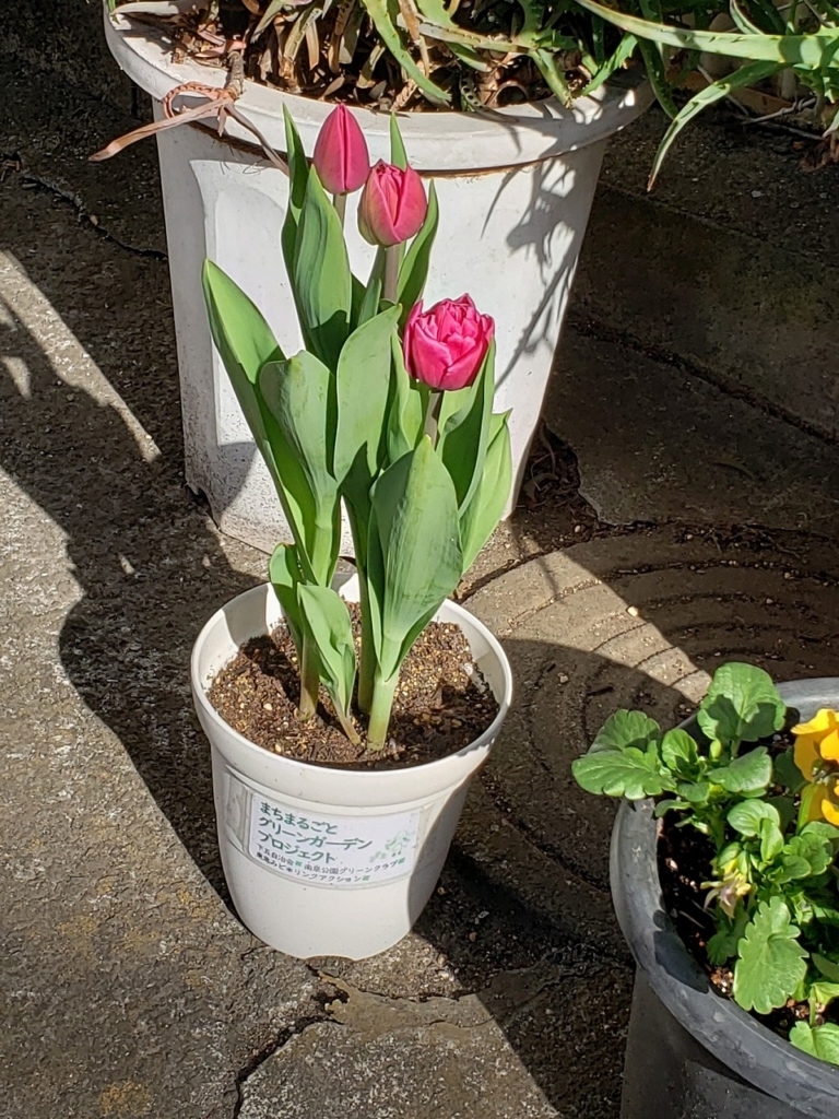 年末年始にかけて、第3回まちまるごとグリーンガーデンPJに参加された方々からの写真が続々届いています。最近は町内を歩いていると、咲きだしたチューリップをあちらこちらで見かけます。大切に育てていただいて感謝です。