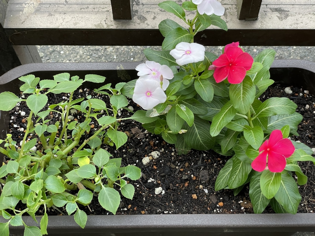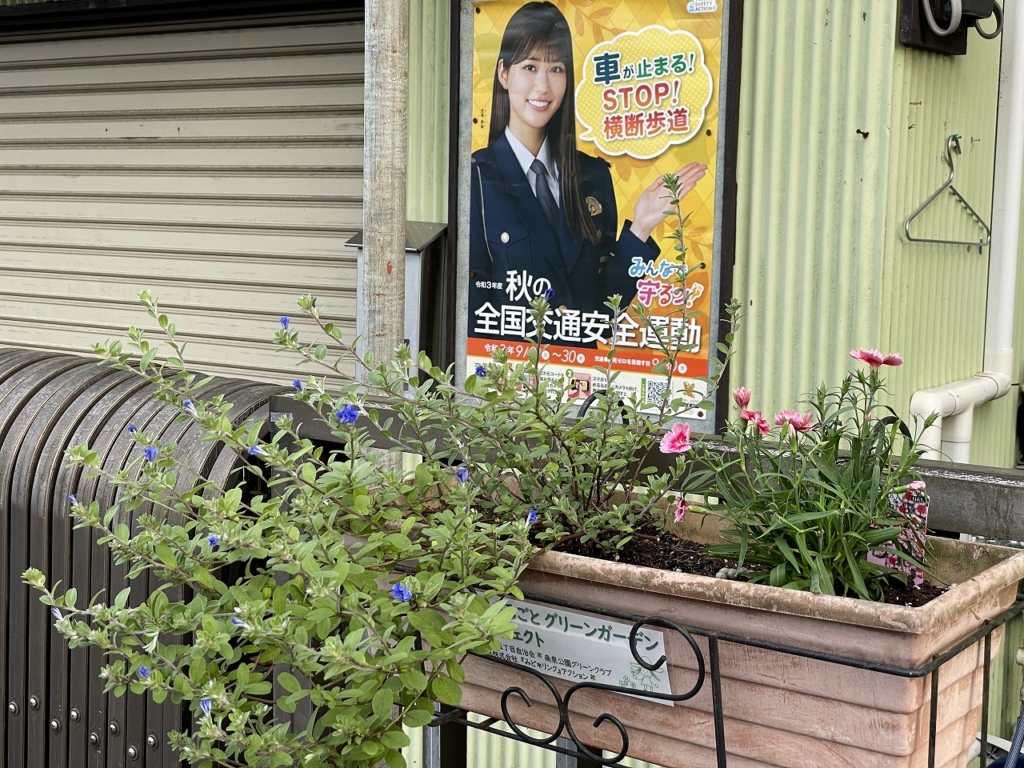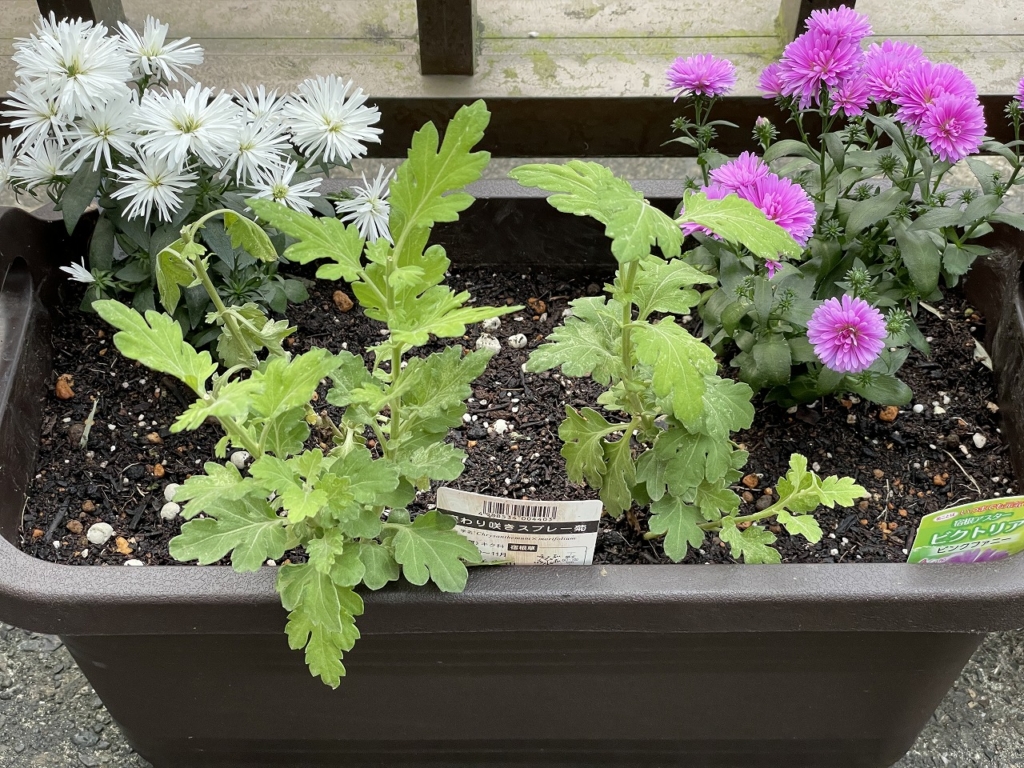 自治会事務所前のプランターに、アスター、スプレー菊、風車菊、ナデシコ、ポトスやニチニチソウを植えました。5月に植えたアメリカンブルーやペンタス、ダリアもまだまだ元気です。 下五自治会事務所前を通る機会がありましたら、ぜひご覧ください。