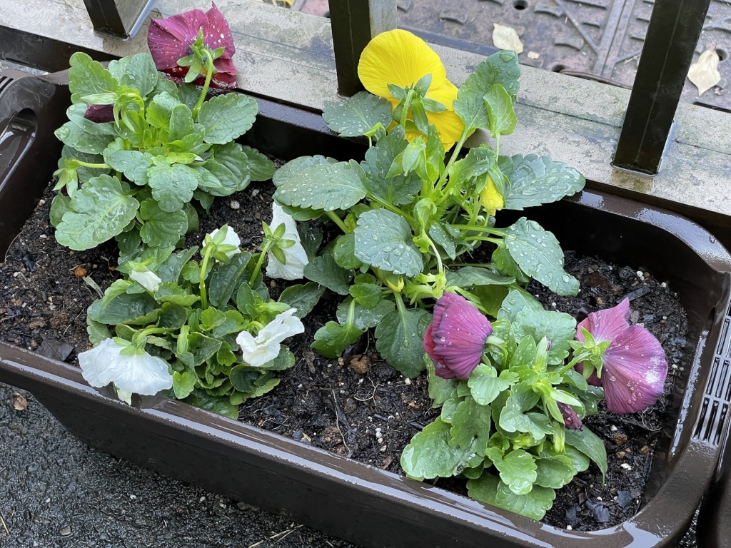 自治会事務所前のプランターを手入れしました。アメリカンブルーや日日草、ナデシコはきれいに咲いています。新しくパンジーの苗も植えましたので春まで楽しめそうです。下五自治会事務所前を通る機会がありましたら、ぜひご覧ください。