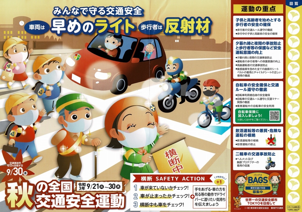 令和3年9月21日(火)から30日(木)は秋の全国交通安全運動期間です。