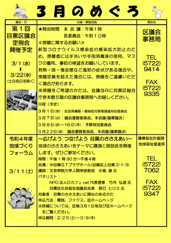 いつも下目黒五丁目自治会の活動に協力を頂いている「こぶしえん」から、毎月第4日曜 ...