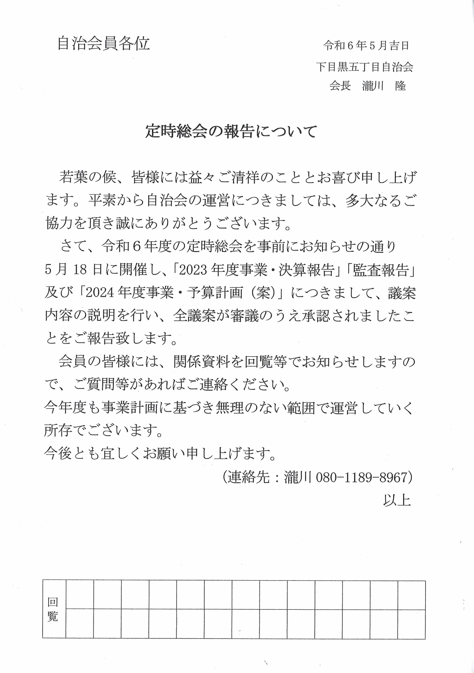 下目黒五丁目自治会では、目黒区の令和7年度まちづくり活動助成(町会・自治会への助 ...