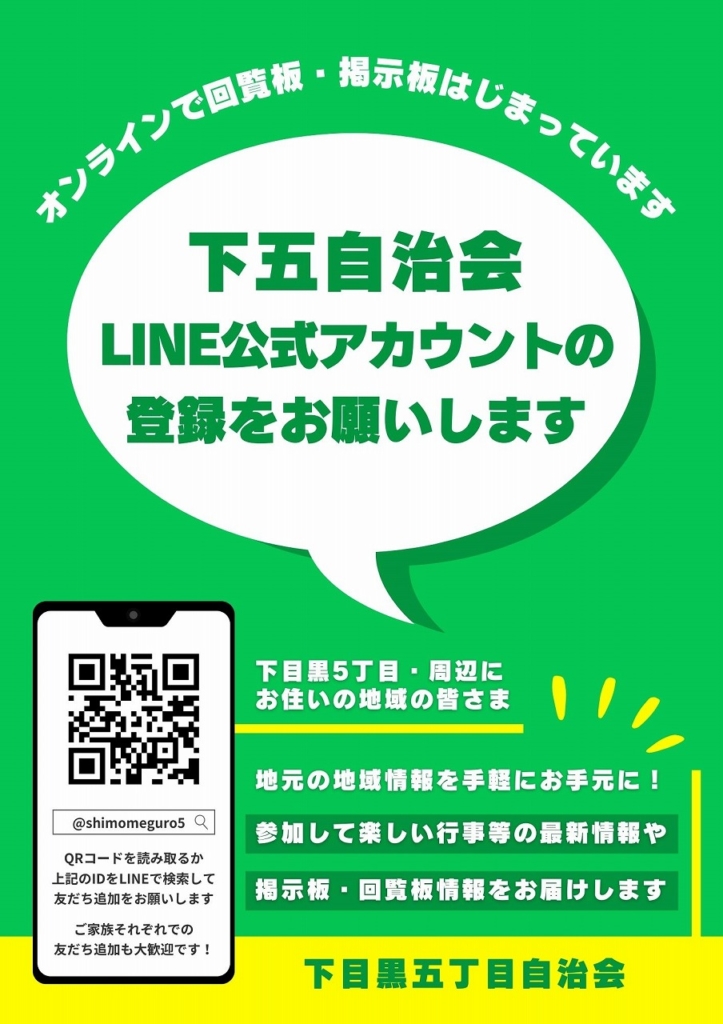 下目黒五丁目自治会では、2025年3月より「LINE公式アカウント」での広報を開 ...