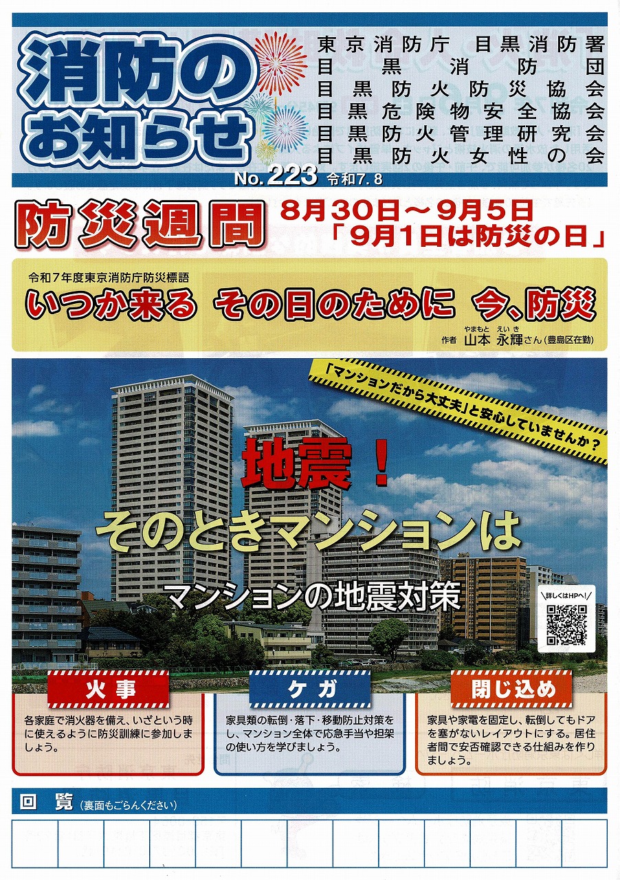 回覧板でお知らせしている情報です。 ・消防めぐろ第361号(目黒消防署)・税のた ...