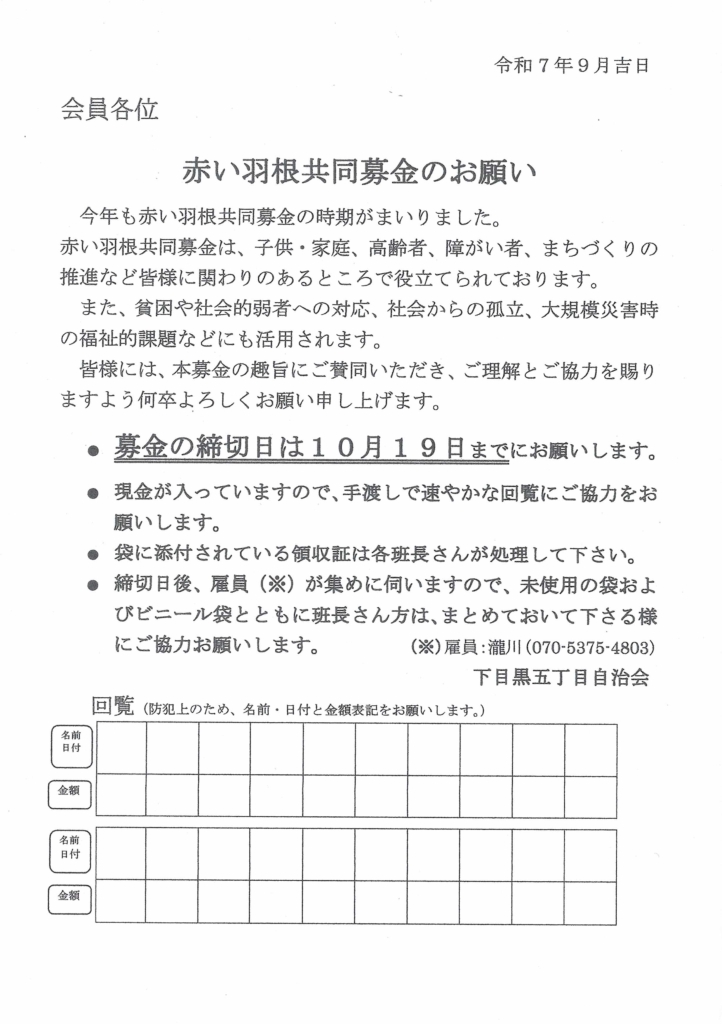 いつも下目黒五丁目自治会の活動に協力を頂いている「こぶしえん」から、毎月第4日曜 ...