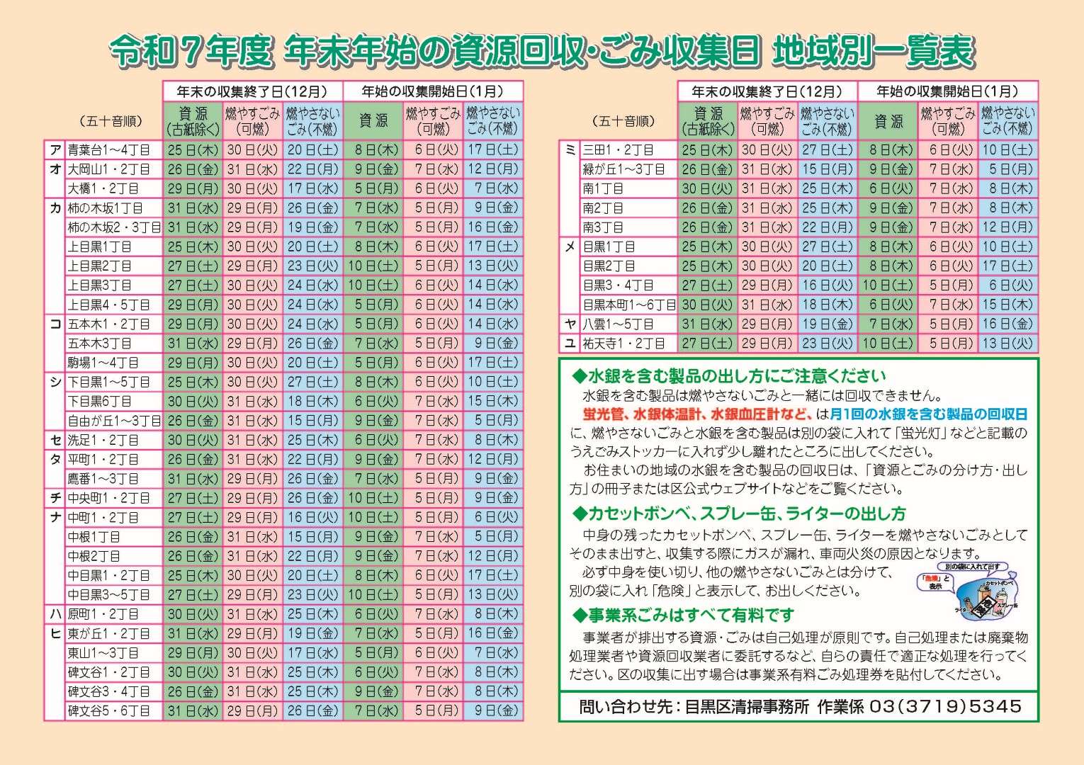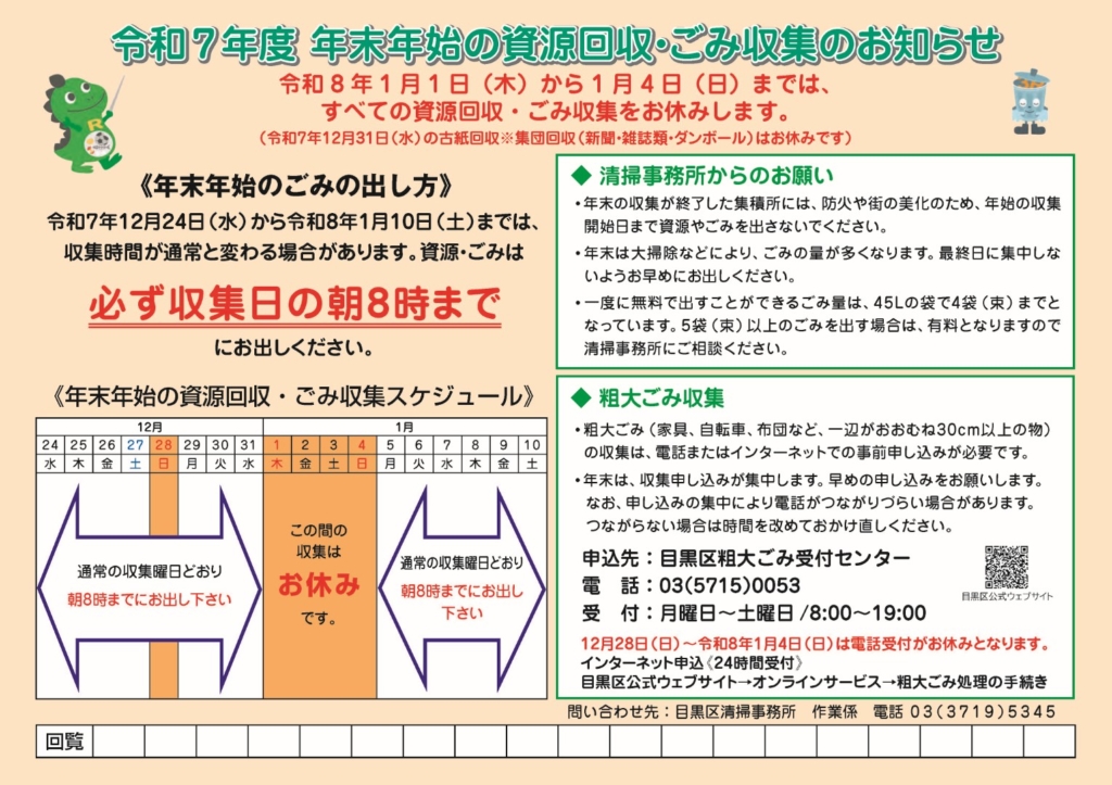 また、2026年(令和8年)1月1日(木曜日)から2026年(令和8年)1月4日(日曜日)までの期間は、すべての資源回収・ごみ収集をお休みします。