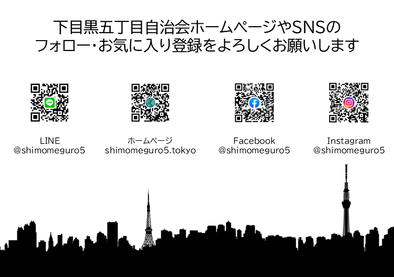 本イベントはどなたでも参加頂けますので、下五自治会の掲示板で「クイズ台紙」を入手の上で、下目黒五丁目自治会の事務所に以下の日時でお越しください。以下の日時以外は景品配布を行いませんのでご注意ください。(掲示板の場所はこのページの下部にアクセスマップを掲載しています)