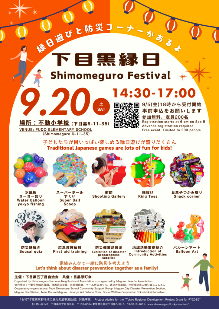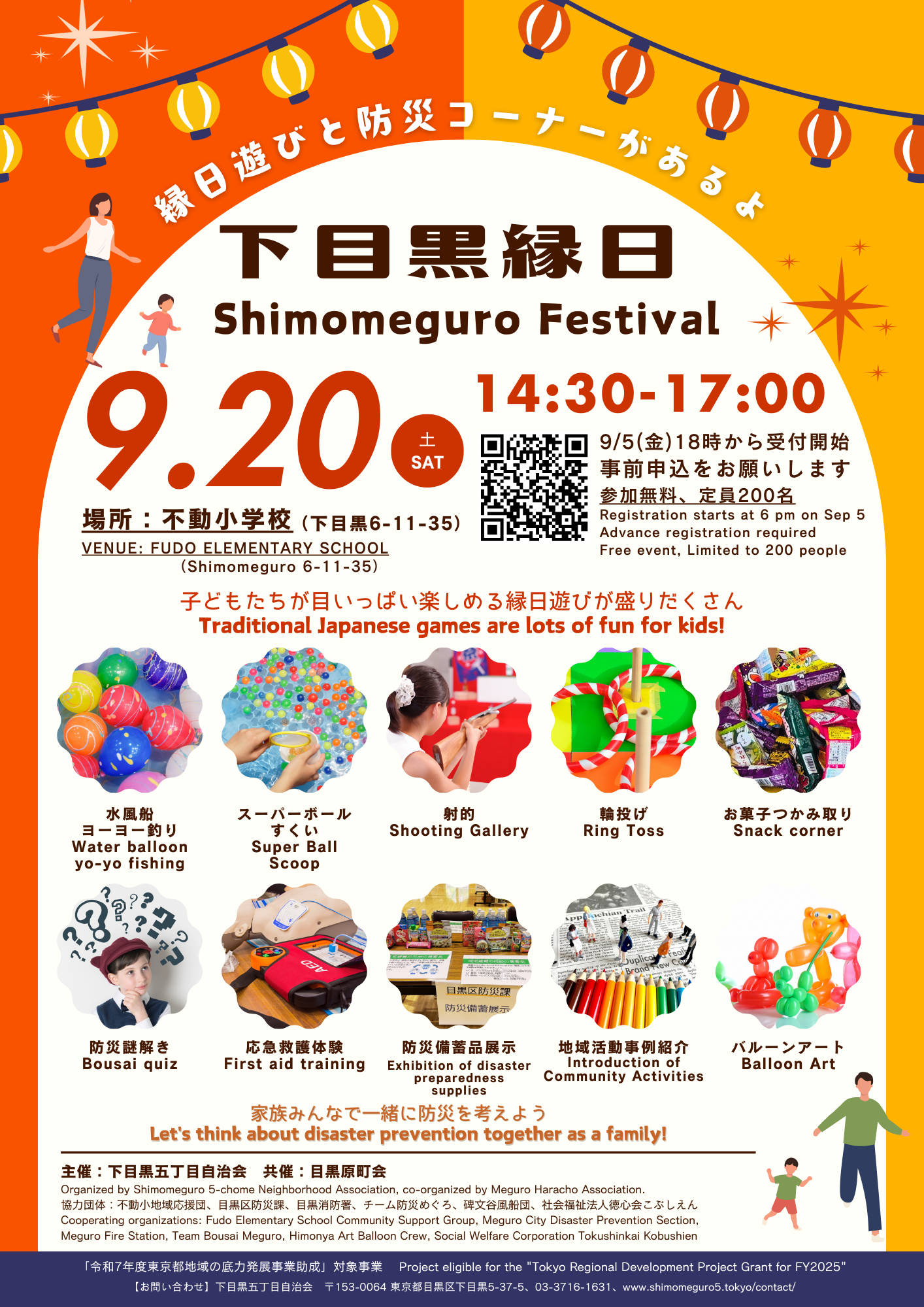 協力:不動小地域応援団、目黒区防災課、目黒消防署、チーム防災めぐろ、碑文谷風船団、社会福祉法人徳心会こぶしえん