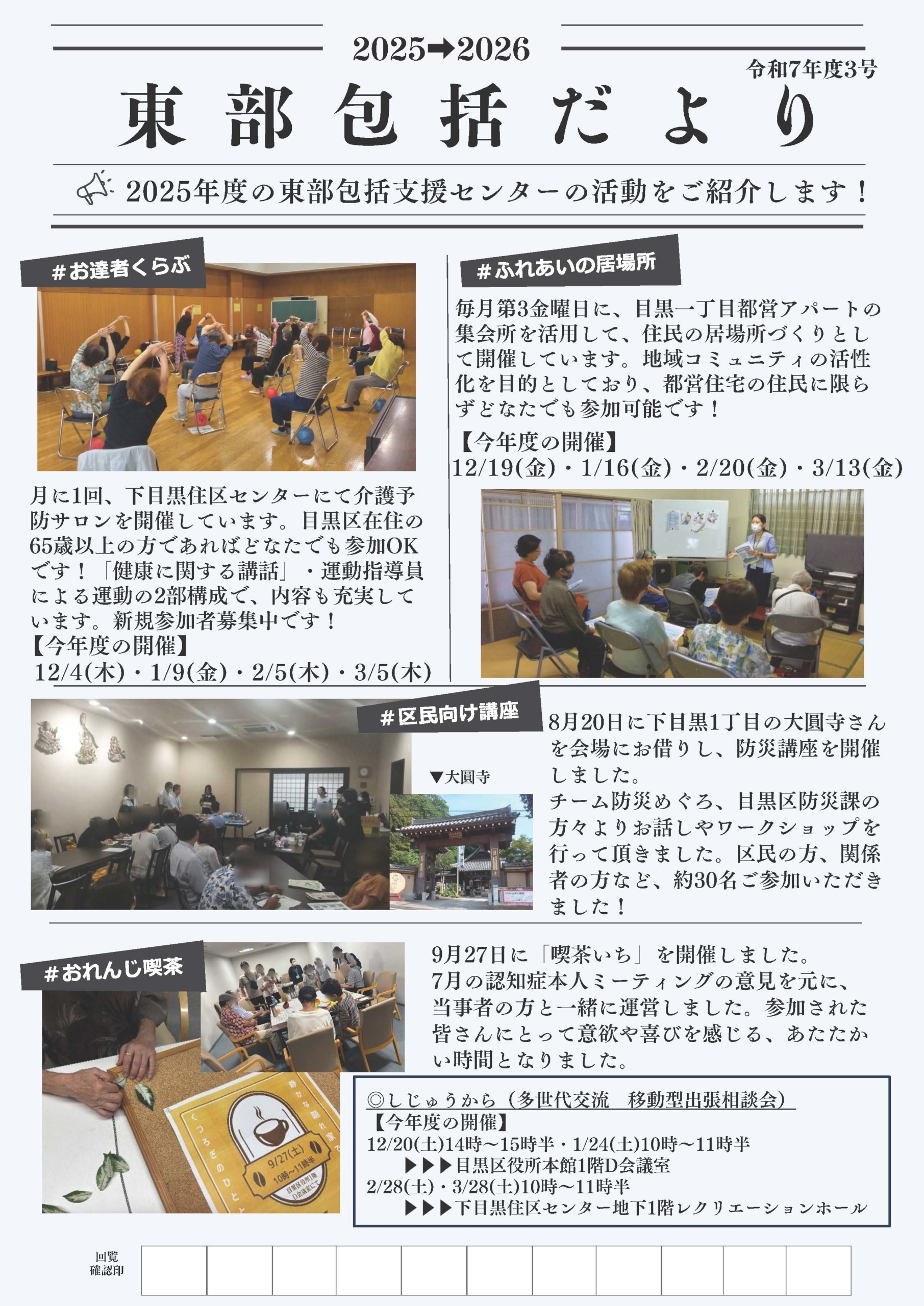 東部包括支援センターから、東部包括だより(令和7年度3号)が届きました。2025 ...